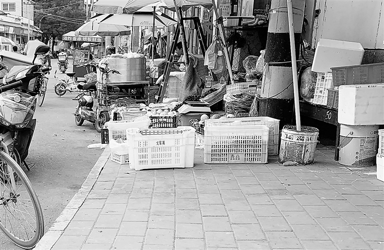 9月17日,記者曾在史莊街看到占道現象比比皆是,不少店鋪經營者直接將貨物搬到人行道上經營,行人只能從機動車道通行。