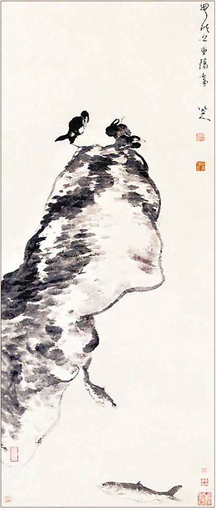 周曉健說,康熙三十三年政局平穩(wěn)、國家安定,這一年的朱耷69歲,還俗已十余年,在安穩(wěn)的生活中創(chuàng)作,自然流露出松快空靈的情緒。他在禪、道的思想滋養(yǎng)之下融會貫通,真正達(dá)到“物我兩忘”的超脫。
