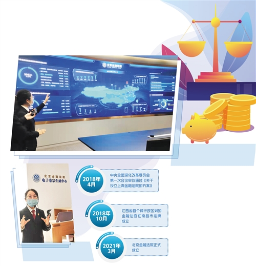 左圖 北京金融法院工作人員根據電子顯示屏介紹全國金融案件情況。經濟日報記者 陸 敏攝