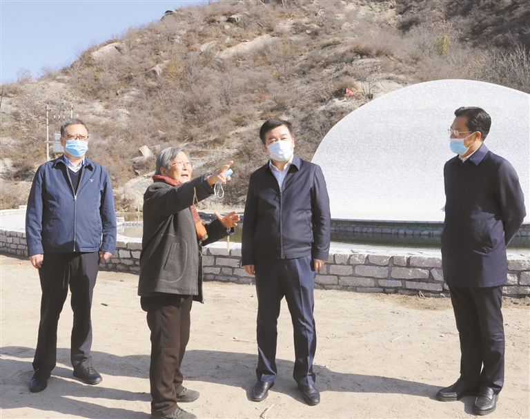 《晉察冀日報》是《人民日報》的前身,被譽為晉察冀邊區的一面戰斗“文旗”,馬蘭村是當年晉察冀日報社的常駐地。1939年至1946年,《晉察冀日報》四次進駐馬蘭,并在此出版第一部《毛澤東選集》。今天的馬蘭村仍保留著《晉察冀日報》戰斗過的印跡,村子正中間一處緊鄰山坡的小院就是當年報社的舊址。幾間磚石結構的老屋門口,掛著排字印刷室、機房、電訊收發室的字牌。黨曉龍步行來到晉察冀日報展覽室,參觀報社舊址,認真瀏覽閱讀,傾聽老一輩革命家“八匹騾子辦報”“三千字內著文”的光輝歷史。他指出,紅色資源是黨的奮斗歷程和光輝業績的歷史見證,對傳承紅色基因、緬懷革命先烈、弘揚革命精神具有顯著而深刻的意義,為黨史學習教育、革命傳統教育、愛國主義教育等提供了重要陣地和鮮活載體。要深入挖掘紅色文化內涵,將修繕保護革命文物與村容村貌改造提升統籌規劃,突出原有特色,把紅色資源利用好、把紅色傳統發揚好、把紅色基因傳承好,依托豐富的紅色文化資源、音樂文化資源和綠色生態資源發展鄉村旅游,壯大旅游產業,為鄉村振興提供新的發展動能。要抓實抓細森林防火工作,嚴格落實責任,強化工作舉措,完善各項預案,突出抓好火源管控,加大排查巡查力度,消除火災隱患。