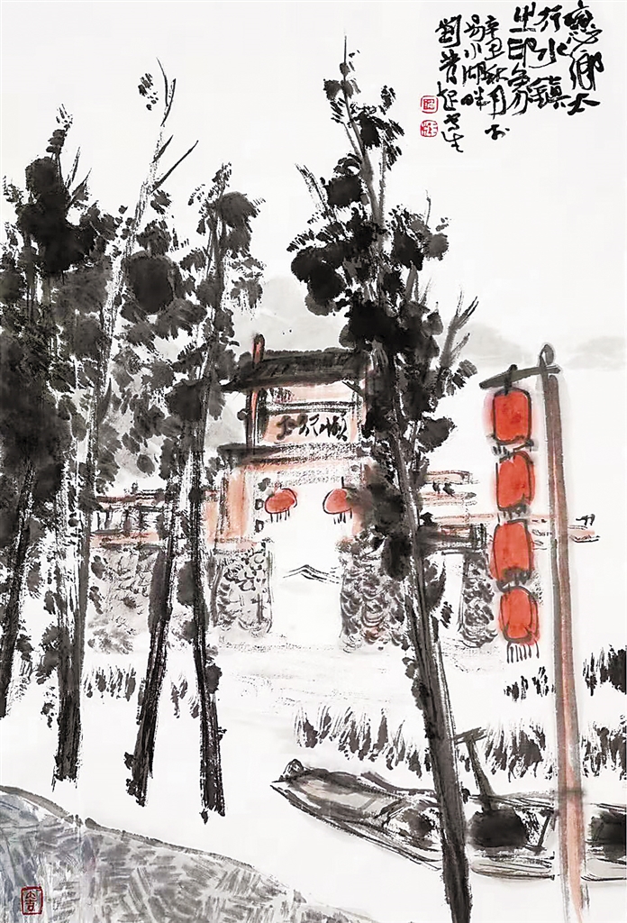 水鎮牌樓風姿綽綽。 劉發起 作