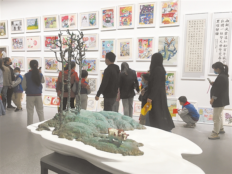 ⑤在市美術館,一場兒童書畫展吸引眾多書畫愛好者。