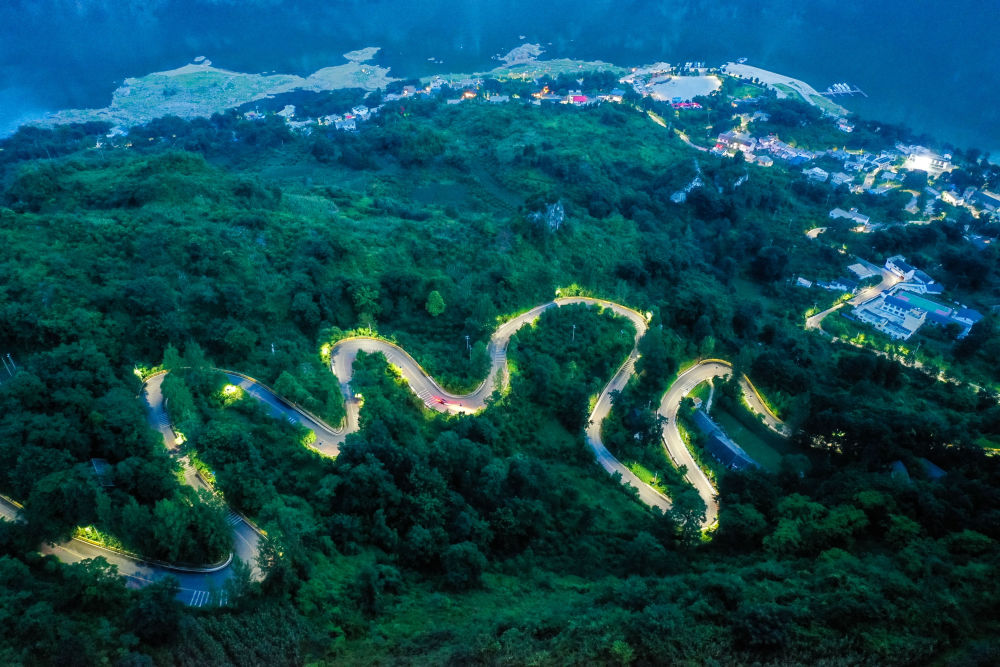 ↑2021年7月23日拍攝的貴州省黔西市新仁苗族鄉化屋村通村公路(無人機照片)。2017年,化屋村實現脫貧摘帽。