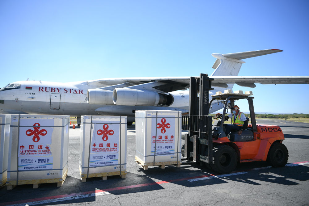 ↑2021年12月24日,在尼加拉瓜馬那瓜國際機場,工作人員轉運由中國國藥集團生產的新冠疫苗。當日,中國政府提供的第二批新冠疫苗運抵馬那瓜,助力當地開展疫苗接種計劃。
