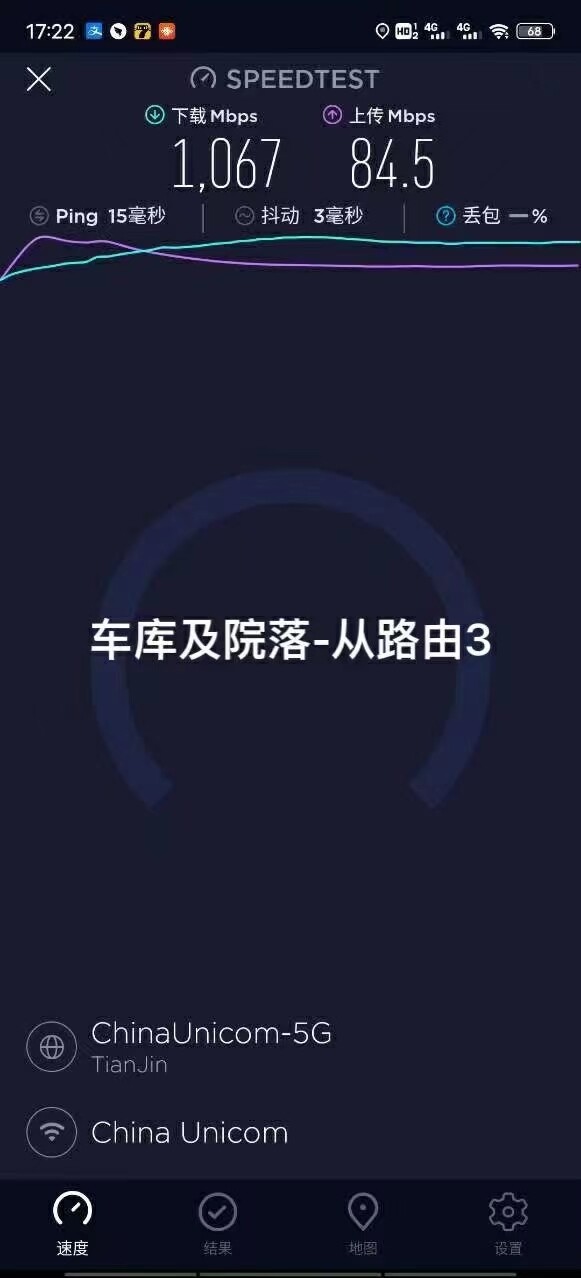 在與用戶充分溝通之后,涿州聯通的智慧家庭工程師們決定充分利用電線暗管、空調室外機孔和別墅房檐等可以利用的現有孔洞,既不額外打眼,也不會破壞裝修風格,且室內全部使用隱形光纖布線,做到美觀大方。考慮到這種設計的施工時長相對較久,王建勇和徐思琪耐心地向客戶做了解釋說明,取得了理解配合。“由于現有孔洞狹窄,作業不便,穿線非常困難,只能一點一點的慢慢攻堅。”精工出細活,經過3個多小時的“攻堅”,終于完成了布線。“我們又考慮到用戶對網絡的需求點較分散,又在房屋不同位置裝置了一主三從共四個千兆光貓,使別墅整體全屋覆蓋、無縫連接,測速均達到1000M以上。”