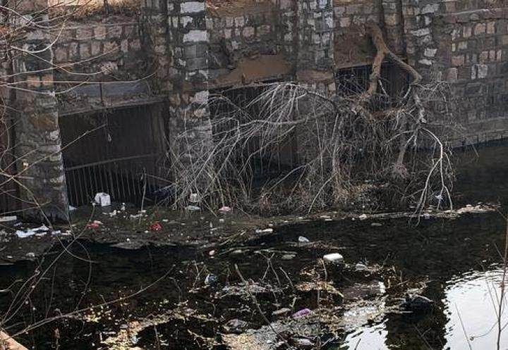 在沙河總干渠曲陽(yáng)縣產(chǎn)德鄉(xiāng)北水峪段向陽(yáng)泵站下,各種垃圾堆積在水閘口。