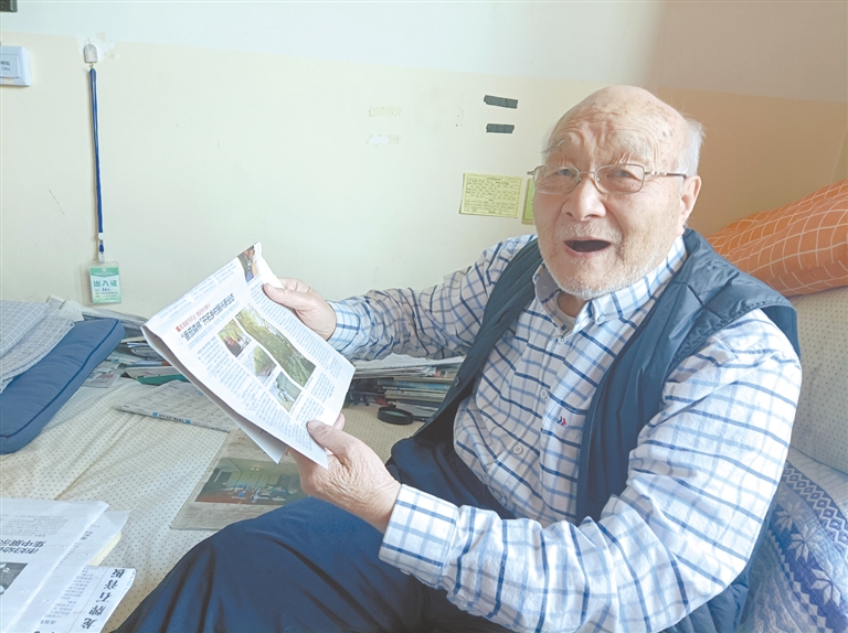 李昌杰老人將養(yǎng)老院當成了家,很安心,每天讀書看報。