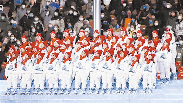 演唱奧林匹克會(huì)歌。 新華社發(fā)