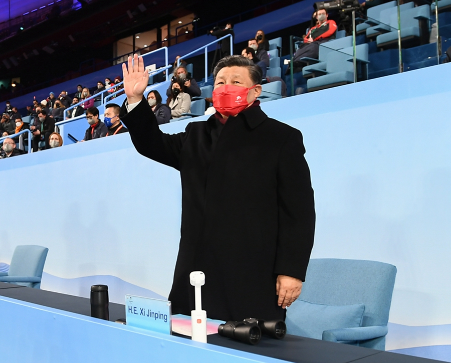 3月13日晚,北京2022年冬殘奧會閉幕式在國家體育場隆重舉行。這是國家主席習近平在主席臺上向大家揮手致意。新華社記者 謝環馳 攝