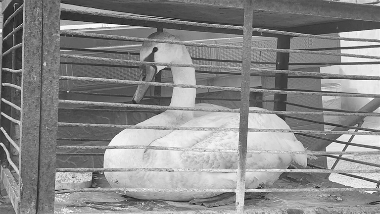 梁秀亭說,這只大鵝體型巨大,重達(dá)14斤,拿各種好吃的喂它,不成想,它什么也不肯吃。這才引起了梁秀亭的注意,原來這“大鵝”與家里養(yǎng)的鵝有些不一樣。憑著對(duì)野生動(dòng)物保護(hù)知識(shí)和政策的了解,梁秀亭第一時(shí)間向村干部報(bào)告了情況。經(jīng)逐級(jí)上報(bào),很快,高碑店市自然資源和規(guī)劃局工作人員來到梁秀亭家,確認(rèn)了這是一只亞成體大天鵝,屬于國家二級(jí)保護(hù)野生動(dòng)物。工作人員對(duì)天鵝進(jìn)行了身體檢查,并對(duì)受傷的翅膀進(jìn)行了消毒處理,然后將其帶回該市動(dòng)物園進(jìn)一步救治。
