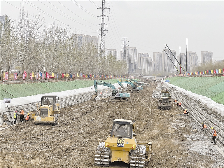 記者從當日舉行的環城水系項目建設工作新聞發布會上獲悉,自2月21日環城水系項目集中開工以來,采取斷流、倒排、清淤、調水四措并舉,在確保堤內河道水質達標,確保達標水質排放的基礎上,工程建設取得階段性成果:涉水工程排水圍堰、土方開挖、清淤已經或基本完成,正在展開U型板樁、鋼筋混凝土基礎樁和水下生態框的安裝和回填,景觀道路橋梁工程現狀拆除進行整理和管線鋪設已全面展開,綠化工程建、構筑工程正陸續推開。