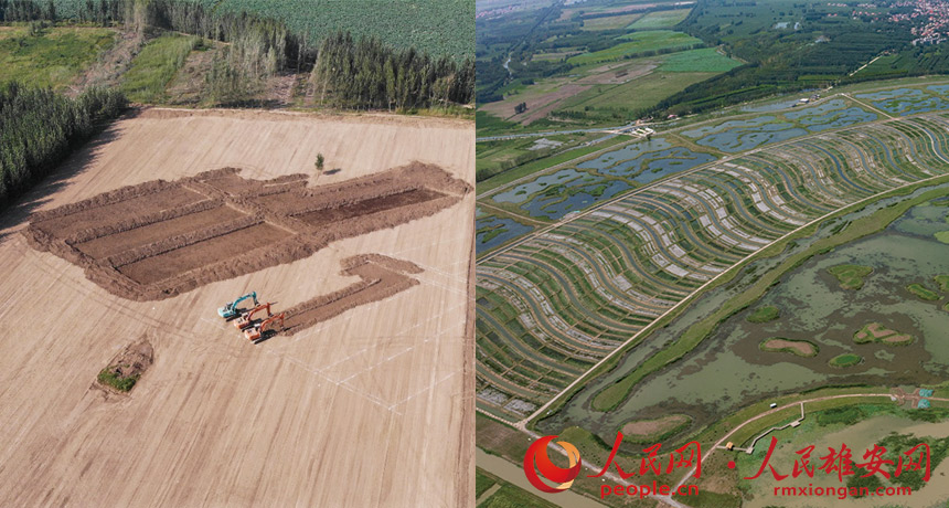 左圖為雄安新區規劃建設局供圖,右圖為人民網李兆民攝