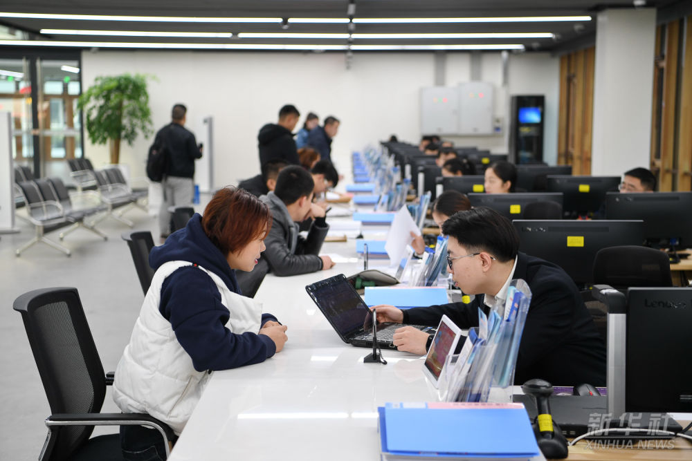 群眾在雄安市民服務中心內辦理業(yè)務(2019年1月17日攝)。2021年,雄安新區(qū)提出“一窗受理、一網(wǎng)通辦、一次辦結、一枚印章管到底”的“四個一”審批模式,推動技術、人才、資金等要素資源集聚。