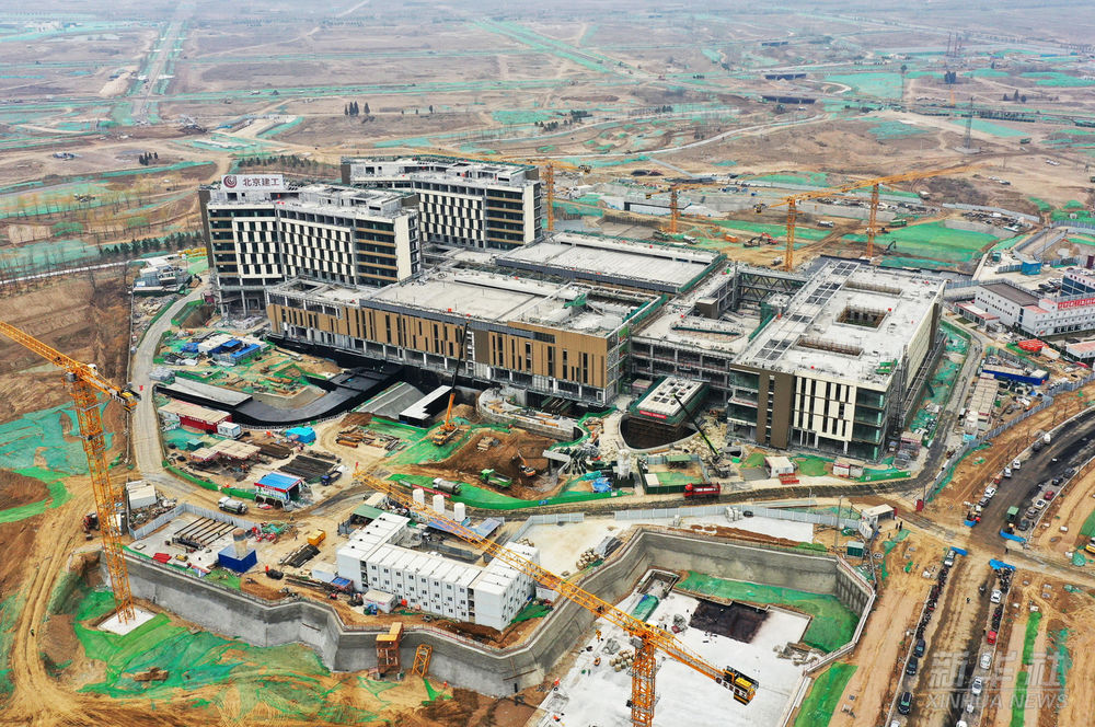 這是雄安新區(qū)首家三甲醫(yī)院——首都醫(yī)科大學宣武醫(yī)院雄安院區(qū)項目建設施工現(xiàn)場(無人機照片,2022年3月29日攝)。該工程由北京市援建,總建筑面積12.2萬平方米,包括門診樓、醫(yī)技樓、住院樓、科研樓等,主體結構于2021年8月封頂,建成后將成為擁有600張床位的獨立運行三級甲等醫(yī)院。