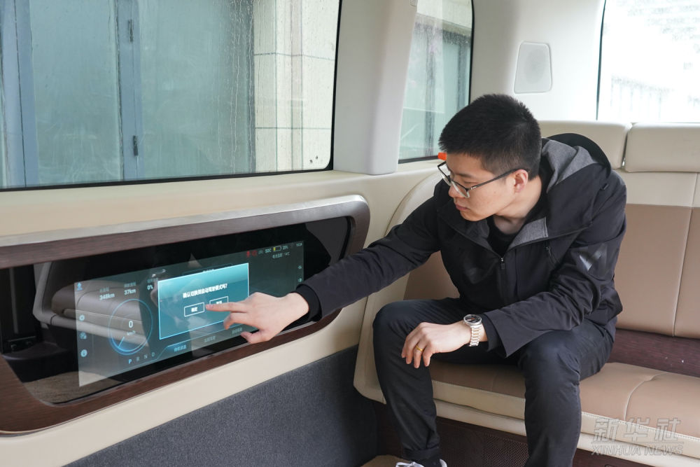 在雄安智繪未來科技園,雄安數(shù)字交通實驗室工作人員操控無人駕駛汽車進行自動駕駛(2021年3月26日攝)。