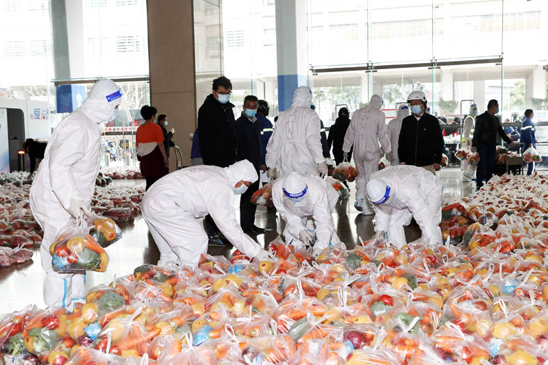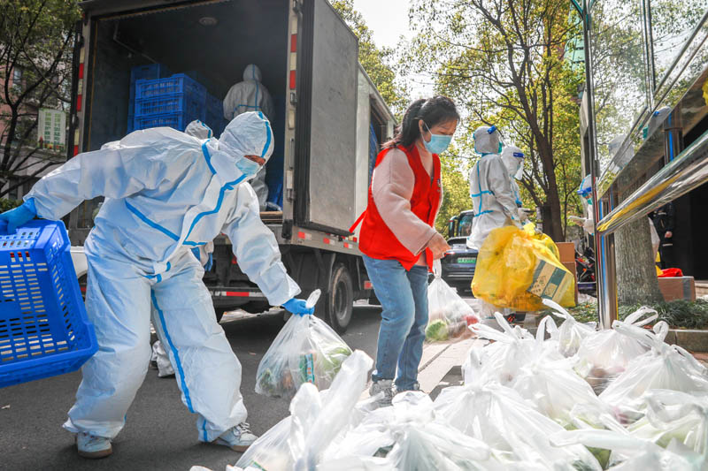 崇明區港西鎮執行封控期間,為及時有效地保障廣大村(居)民的生活需求,第一時間啟動保供應急預案,成立鎮、村兩級保供工作專班,連夜對接轄區內主副食品供應企業,通過集采、集供、集送的方式全力保障港西群眾生活物資需求。港西鎮供圖