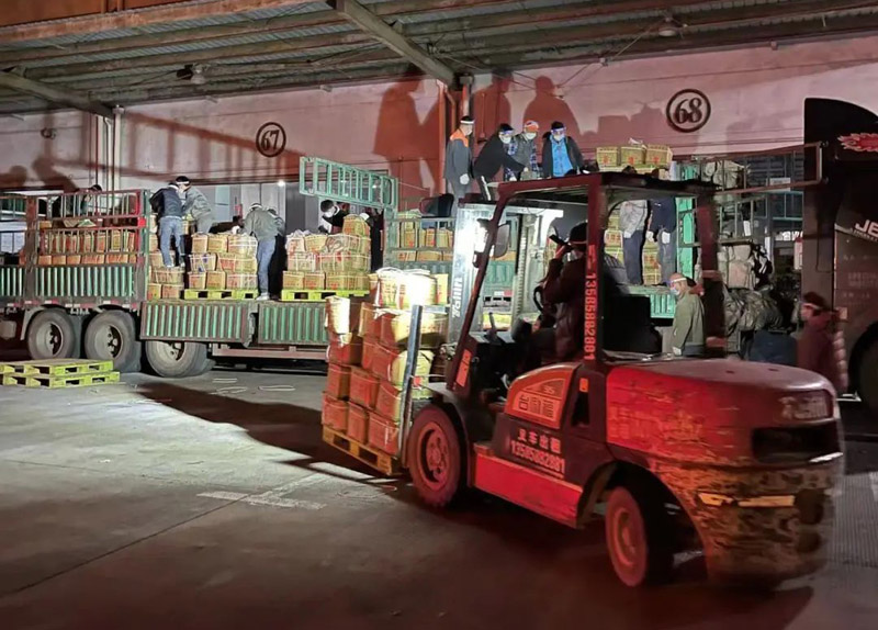 普陀區桃浦鎮的一處倉庫,徹夜燈火通明。“4000多噸的蔬菜、肉禽蛋類食品,可以保障全區5天的量。”上海永昌菜市場經營管理有限公司相關負責人介紹說,一手開拓貨源保囤貨量,一手招募人手保運力足,“兩手抓”連住了“菜籃子”的“兩頭”。普陀新聞辦供圖