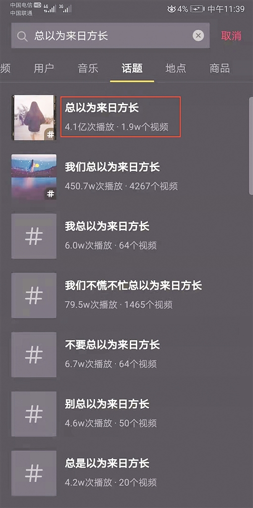 歌曲《總以為來日方長》由張鳳敏作詞、青年流行歌手梅朵演唱,3月26日一上線發行就引起大家的強烈共鳴和認同。截至4月7日,抖音平臺播放量3.3億次,酷狗音樂飆升榜位居第2名。
