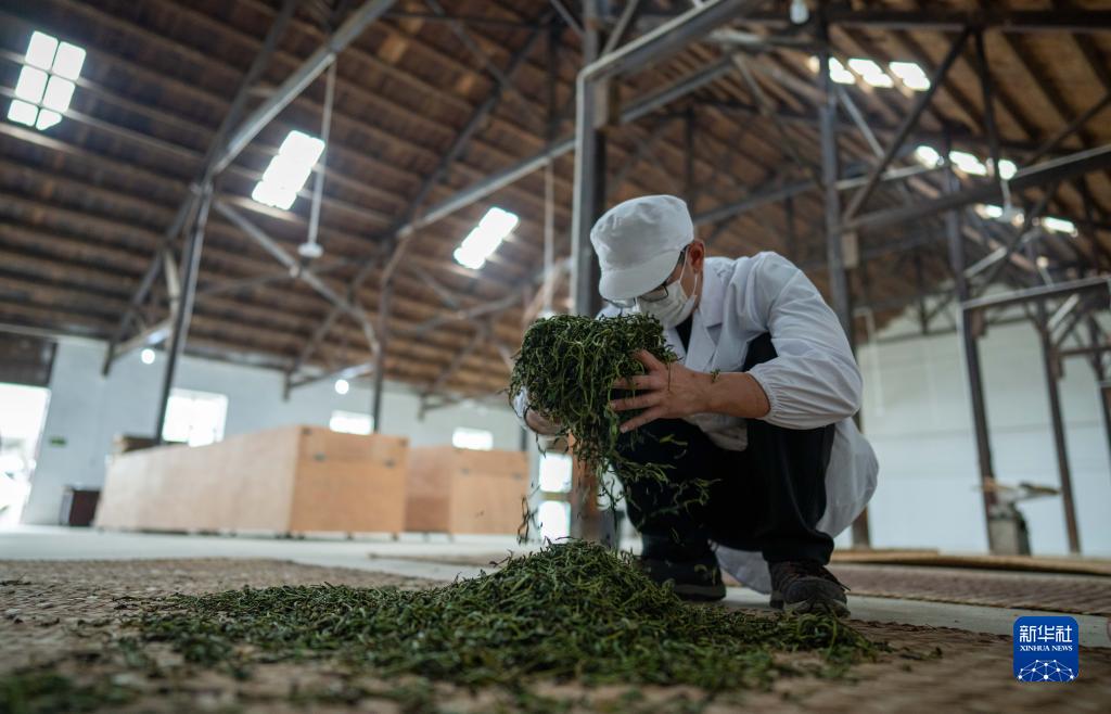 在云南西疇縣,“90后”創業者杜岑在制茶(3月27日攝)。新華社記者江文耀攝