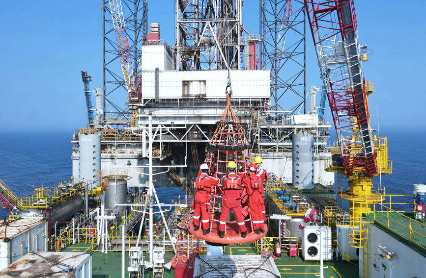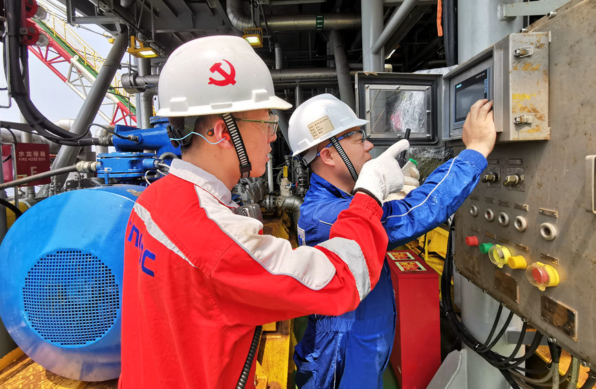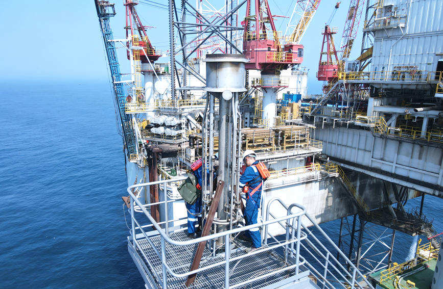 海上平臺工作人員在測試設備。肖書俊攝
