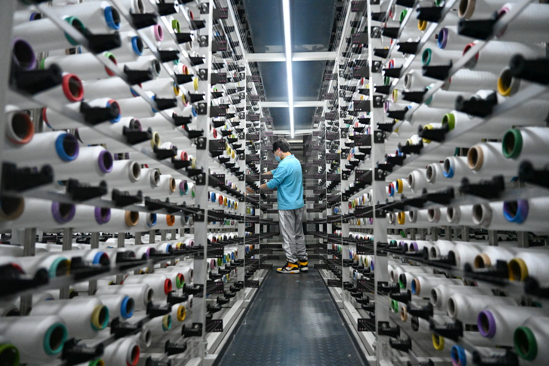 4月12日,在福建泉州石獅市的一家紡織企業(yè),工人在工廠里忙碌。新華社發(fā)(周義攝)
