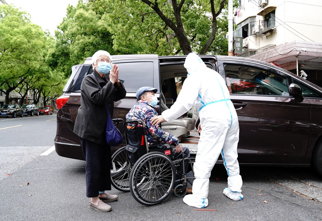 上海閔行區古美社區衛生服務中心司機馮守光把血透患者和家屬送回家(4月18日攝)。新華社記者 張建松 攝
