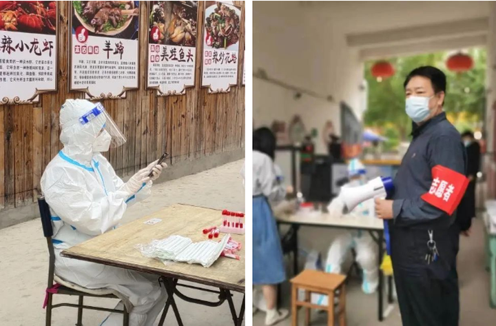 留法勤工儉學(xué)運(yùn)動紀(jì)念館張智勝、全媛媛 、丁紫旋 、徐錦琳參加社區(qū)核酸檢測志愿服務(wù)