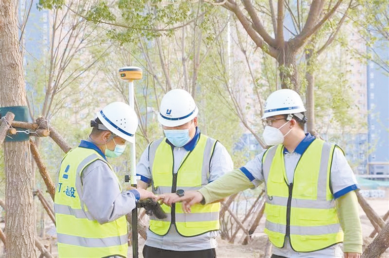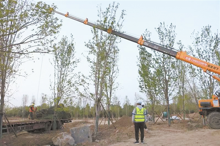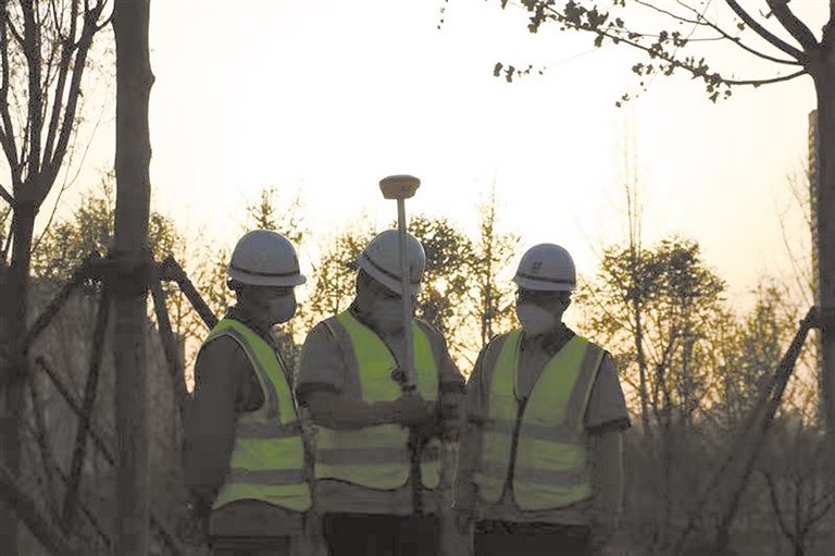 河北建設集團園林工程有限公司環城水系—黃花溝生態設施綜合提升工程項目部建設者,為了搶抓種植黃金期,34名管理人員和150多名施工人員,為在“五一勞動節”到來之前完成種植15000株喬木的任務,多工種聯動、各部門配合,晝夜奮戰,做到防疫、建設兩不誤。