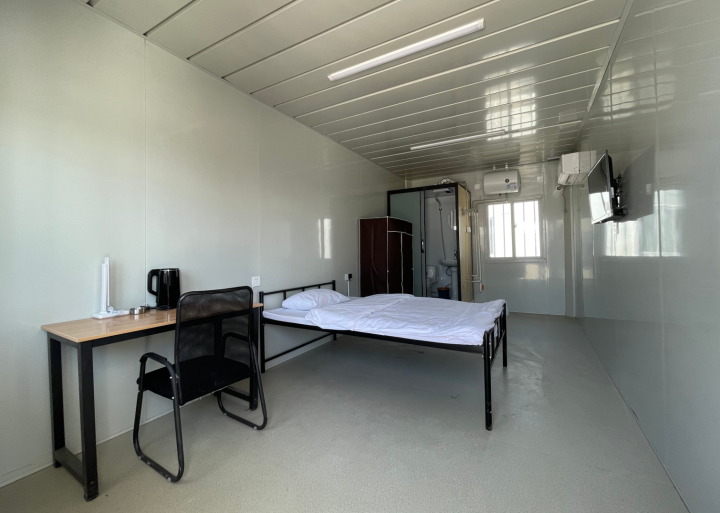 三個功能分區采用圍欄隔離,并建有專門污水處理系統,由專門運輸設備外運,不排入市政管網。隔離房間不僅生活配套設施齊全,還高標準配備呼叫系統及語音驅離系統,室外安裝全方位視頻監控系統,極大滿足了疫情防控隔離需求。