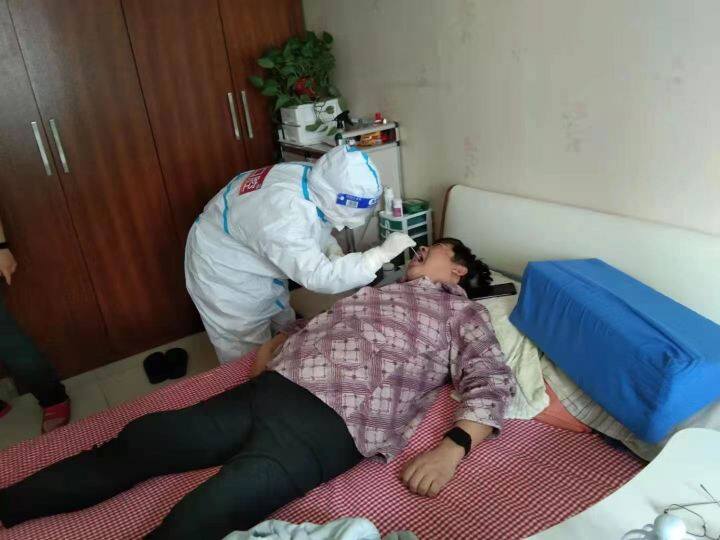 在進行全員核酸檢測時,花傾城小區檢測點竇志輝、黃艷玲兩位老人其家人向社區工作人員反應兩位老人都90多歲行動不便,社區工作人員協調核酸流動檢測人員上門檢測。遇到高齡老人時,社區人員和志愿者都會主動上前關心照顧,提供必要的幫助。