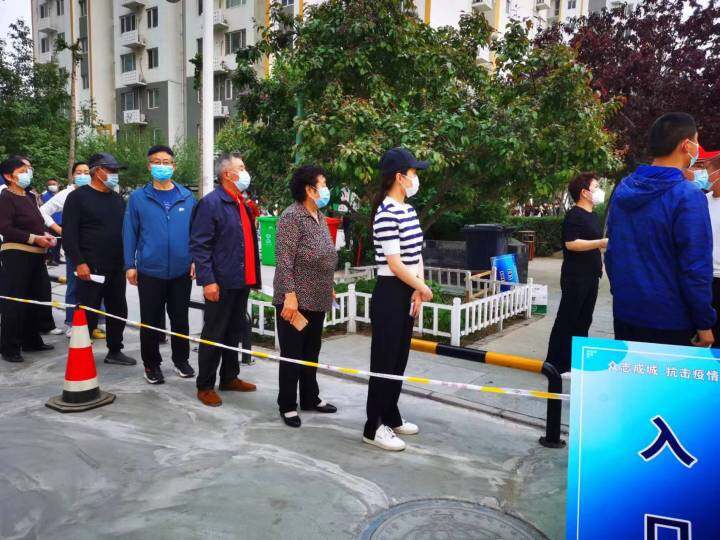 由機關下沉志愿者、華奧物業員工、周邊居民組成的志愿者隊伍奔赴各自崗位,引導居民有序排隊、測量體溫、進行防疫宣傳。公安、街道執法隊、小區物業增派人手維持現場秩序,為全員核酸檢測提供有力保障。