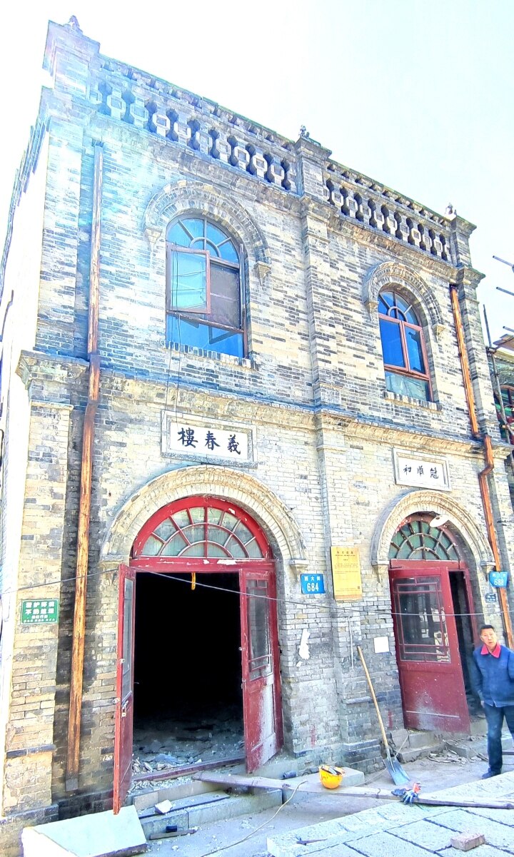 在建筑風(fēng)格上,西大街沿街建筑以古建二層建筑為主,獨(dú)特的建筑風(fēng)貌,坡頂灰墻、半圓拱頂門窗、立面有裝飾線和花飾,保存完好的磚雕工藝,形成了西大街“中西合璧、南北交融”建筑畫廊。