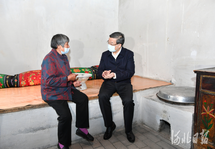 5月7日至8日,省委書記倪岳峰在保定市調研。這是倪岳峰在阜平縣駱駝灣村,看望慰問顧寶青老人。河北日報記者趙威攝