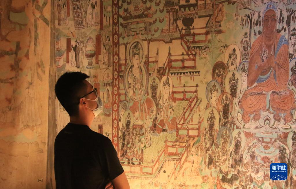 5月15日,游客在甘肅省敦煌市博物館參觀文物展。