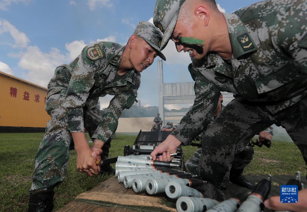 駐香港部隊某旅裝步一連官兵裝填彈鏈(5月28日攝)。新華社發(易定 攝)