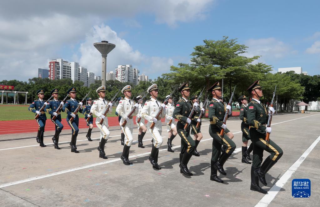 駐香港部隊某旅裝步一連組織儀仗專業訓練(5月28日攝)。新華社發(易定 攝)