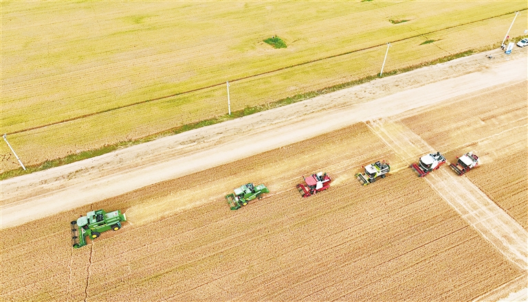 仲夏時(shí)節(jié),驕陽似火。炙熱的陽光,把豐收的麥地染成了金色。麥子熟了,喜悅寫滿莊稼人的臉龐,和他們一同喜上眉梢的還有新麥客。與傳統(tǒng)麥客不同,沒有鐮刀、麥垛,他們是跨省作業(yè),以一當(dāng)百的大型農(nóng)機(jī)手。