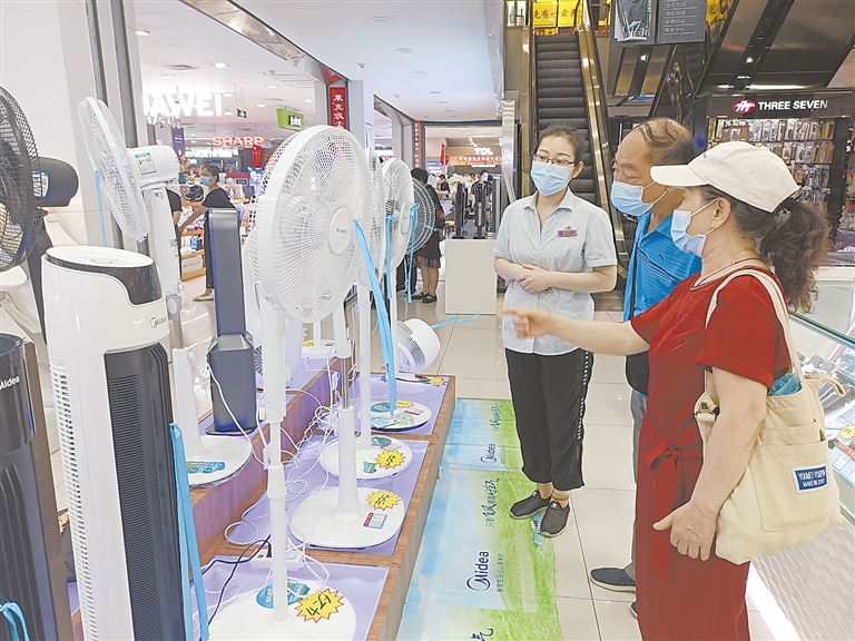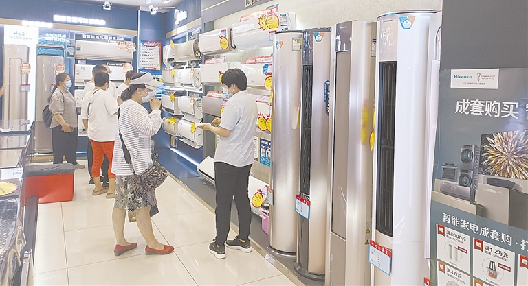 “昨天晚上的悶熱太難受了,這不趕緊來逛逛空調。”6月21日上午,記者探訪時代商廈時,正在選購空調的徐先生這樣說。連日來,保定的氣溫持續走高,也讓空調、電扇等能夠帶來清涼的家電產品成了“香餑餑”。