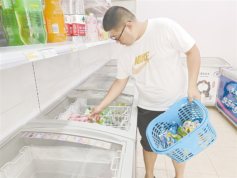 6月21日,記者走訪了盛興路附近的冷飲批發店,各種品牌的冰棍、冰淇淋等擺滿了冰柜,時不時就有顧客上門“批棒冰”,大部分人都是整兜買。老板告訴記者,自從6月份以來,冷飲批發的生意就“火”了起來,這幾天雪糕批發較前兩天增加20-40%。