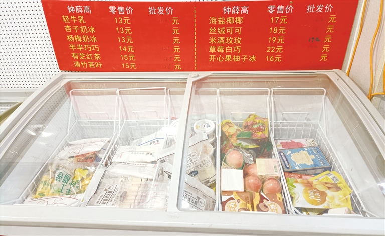 20元左右的“高價雪糕”冰柜前,零售、批發價目清楚可見。