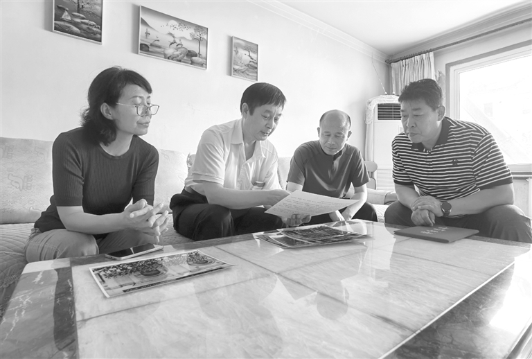 5日上午,記者和檔案館工作人員一起來到鄭建富家中。鄭建富拿出幾張略微泛黃的黑白照片,大家圍坐在客廳寬大的茶幾旁,聽他將這些老照片背后的故事娓娓道來。