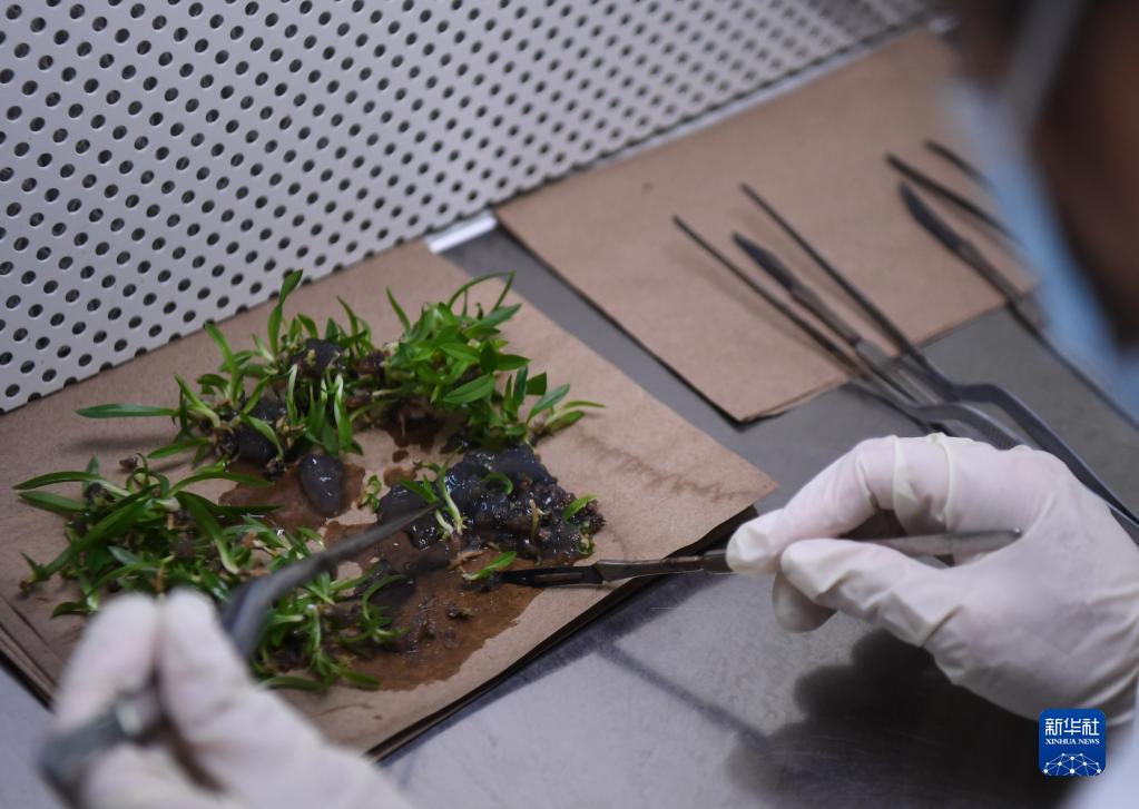 在華南國(guó)家植物園,工作人員對(duì)兜蘭進(jìn)行增殖處理(7月4日攝)。新華社記者 鄧華 攝