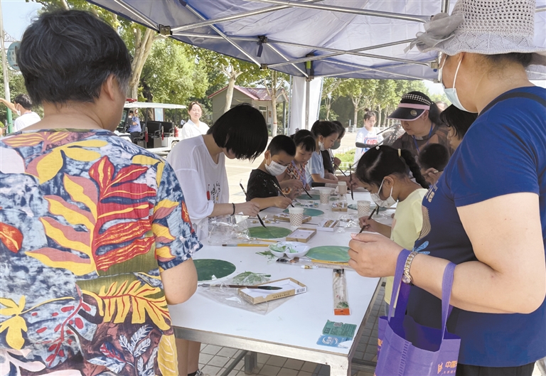 其中,五感體驗區位于花園大道,采用“花境”這一新型展示方式,共展示新品荷花、睡蓮30余種,通過用聽覺、嗅覺、視覺、觸覺、味覺的五感體驗,讓游客融入自然、感知自然、享受自然。為增強觀眾參與感,保定市植物園還在此區舉辦了荷花主題文創互動活動,組織預約報名的兒童參加水生植物繪畫展,并發放專題文創活動紀念品。