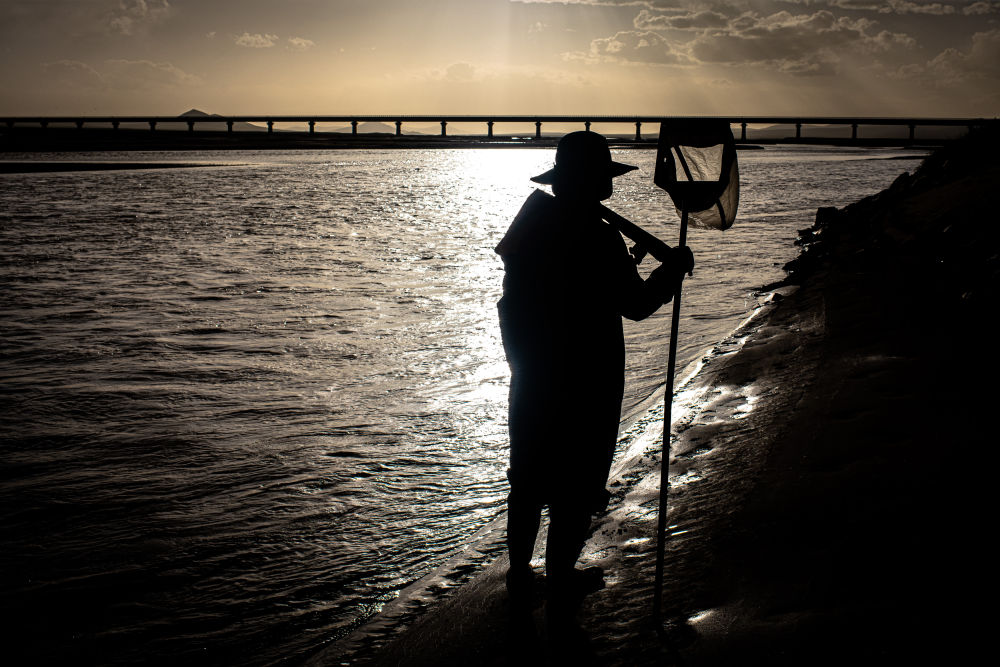 7月28日傍晚,劉晗在沱沱河沿,舉起漁網,照例采樣。夕陽西下,波光粼粼的水面與他的身影相融,溫暖的光線,讓眼前的畫面十分唯美。也許是老天眷顧,就在這個充滿畫意的現場下,遠處的大橋上,一列火車緩緩駛來,我迅速拿起相機,調整角度記錄下這幾乎完美的瞬間。