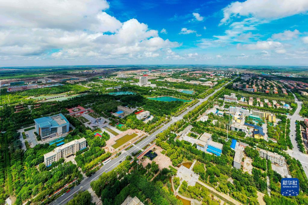 這是2021年7月22日拍攝的新疆生產建設兵團第三師圖木舒克市(無人機照片)。新華社發(王俊龍 攝)