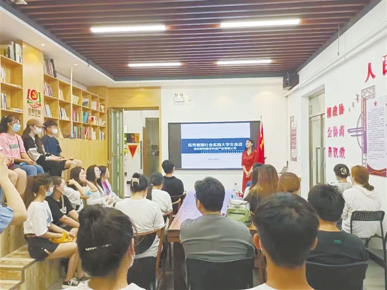 保定晚報(bào)訊(記者安亞靜 通訊員牛然)向大學(xué)生宣講現(xiàn)代化品質(zhì)生活之城,用保定之變的實(shí)際成效感召青年,用保定發(fā)展的美好明天鼓舞青年;組織大學(xué)生赴大型企業(yè)、轉(zhuǎn)型項(xiàng)目、紅色教育基地調(diào)研,讓他們感知家鄉(xiāng)變遷,增強(qiáng)回鄉(xiāng)就業(yè)創(chuàng)業(yè)信心;開展“喜迎二十大”暨“牢記青春寄語(yǔ)”主題宣講活動(dòng)、組織參加公文寫作專題輔導(dǎo)講座……連日來(lái),來(lái)自全國(guó)500余所高校的5030名大學(xué)生參與的暑期社會(huì)實(shí)踐活動(dòng)正在火熱進(jìn)行中。