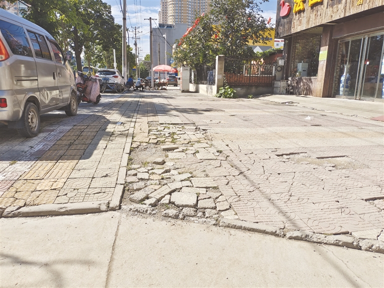 李女士說,她在這個(gè)小區(qū)住了有三年了,眼瞅著緊鄰的風(fēng)帆路便道磚換了,陽光大街不少地方的便道也煥然一新,就自家門口這一小段,坑坑洼洼的卻沒人理會(huì),有些著急。