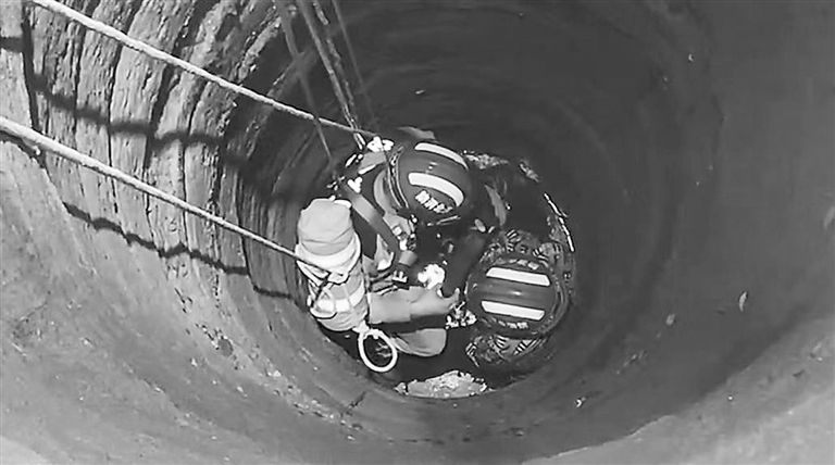 救援人員到達現(xiàn)場后,經(jīng)勘察了解得知,女孩在踩踏自家院內(nèi)滲水井井蓋時,井蓋發(fā)生翻轉,不慎掉入深約10米的井中。井內(nèi)水深約為2米,女孩被困在距離地面8米左右的位置,僅靠一根塑料水管支撐。