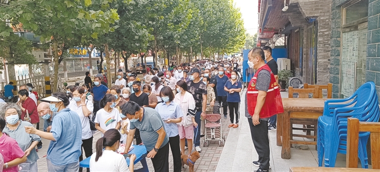 黨員志愿者協(xié)助史莊社區(qū)進(jìn)行核酸檢測(cè)。