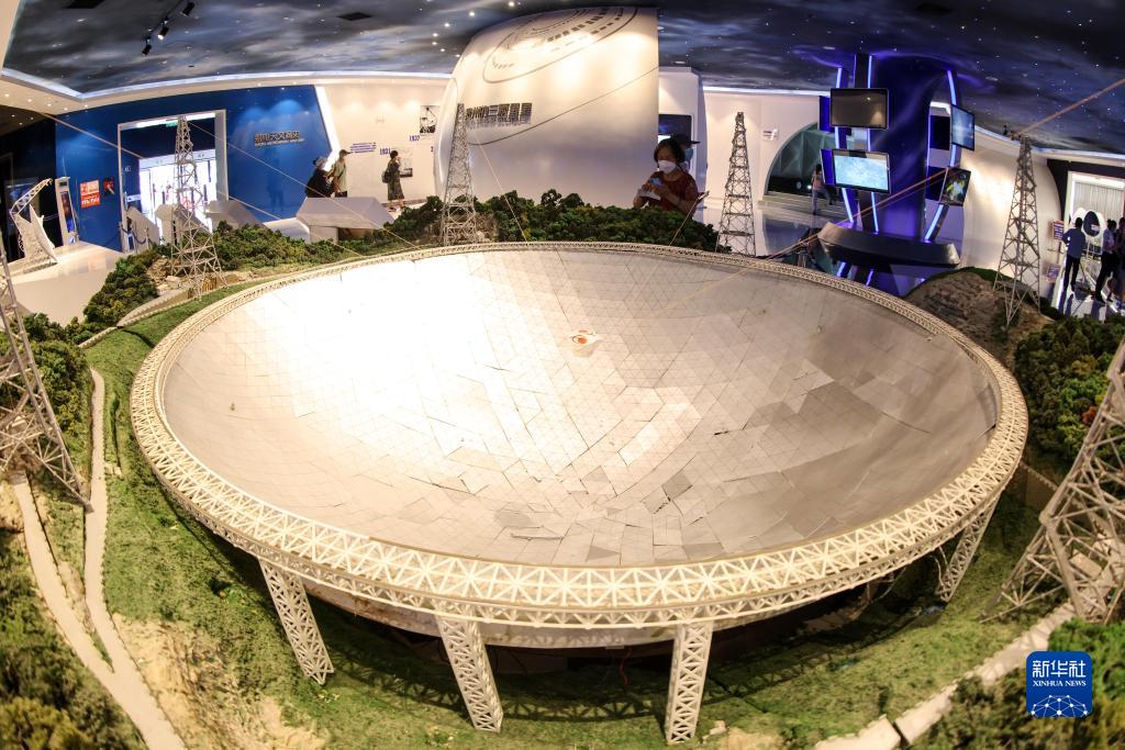 2022年7月20日,參觀者在天文體驗館內觀看“中國天眼”模型。